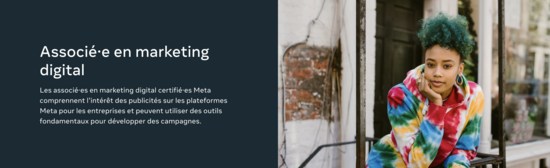 Une fois la certification d’associé en marketing digital certifié Meta obtenue, vous pouvez obtenir un badge de spécialiste des mesures média certifié Meta.